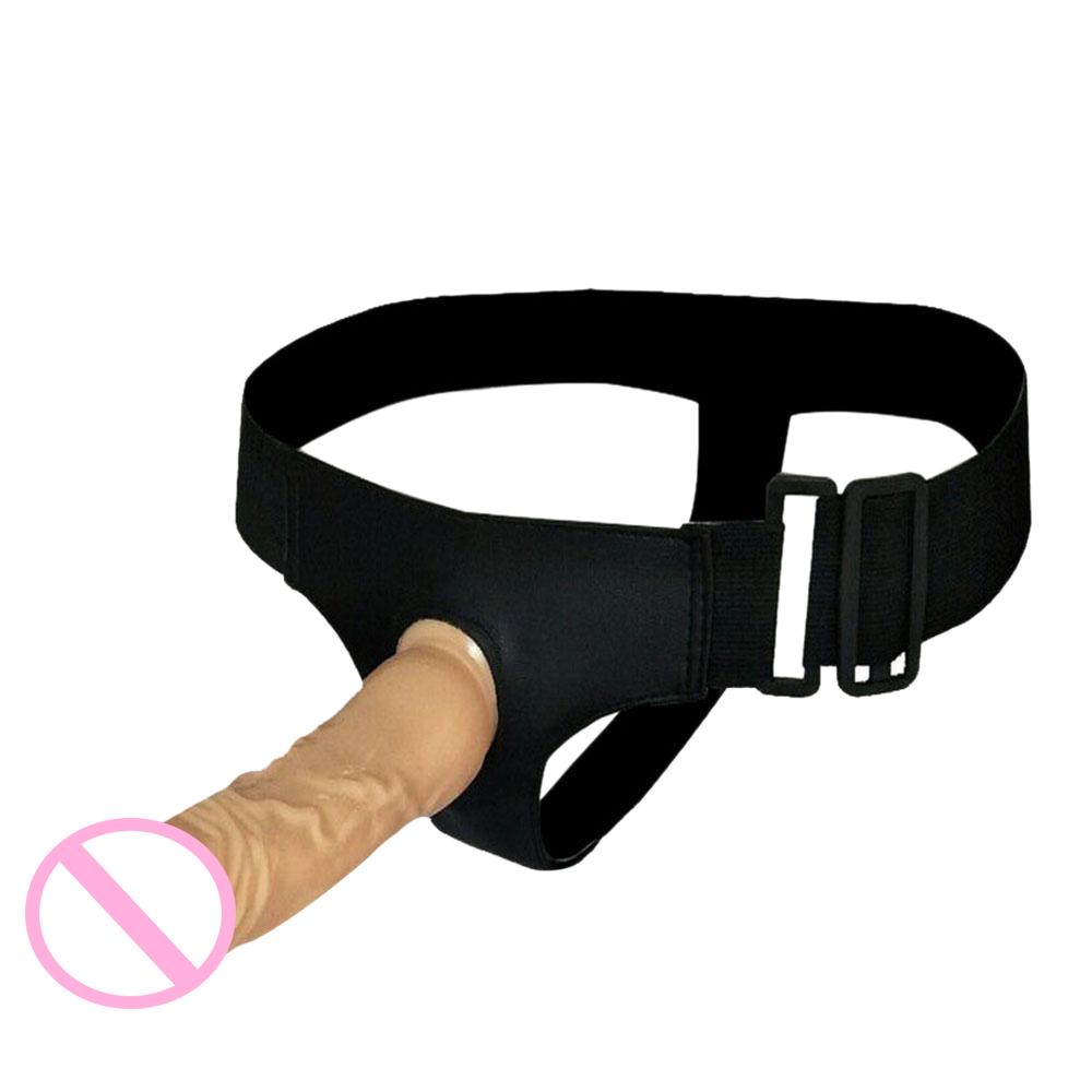 Dildos are usually filled, but a hollow strap on dildo has an empty cylinder which a man should put his own penis in . These toys can be used both with flaccid and erect penises and are meant to compensate for the lack of length and girth of a user . They can also be used for men with erectile dysfunction .