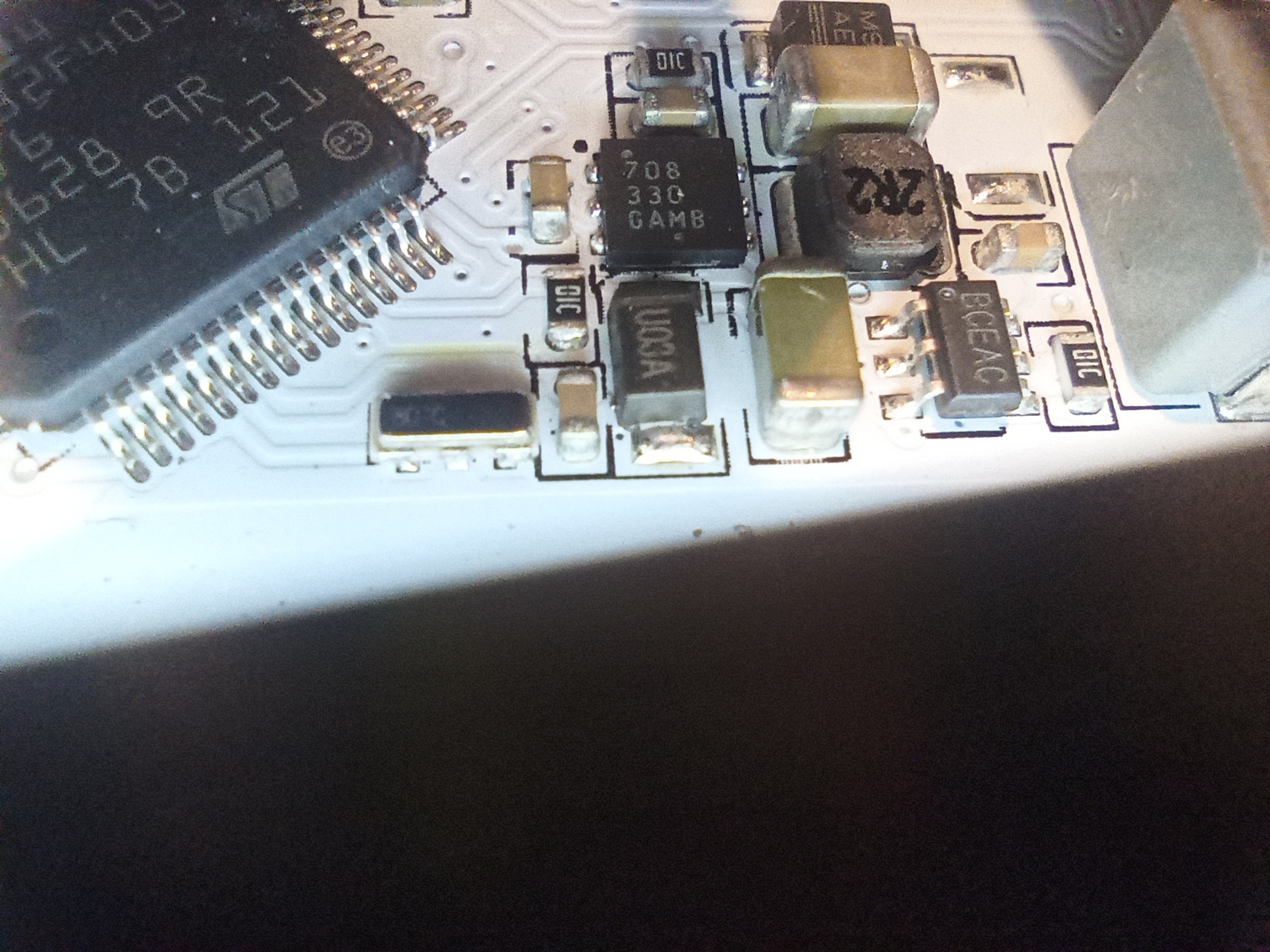 По заводу оно идёт без защиты лаком либо каких-либо других методов. Разъем для st-link пустует. Чуть выше видно can. По входу стоит ещё защитный диод.