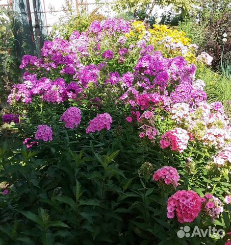 Как видно на фото, эти многолетние флоксы имеют цветки розовой, голубой, белой, ярко-лиловой, красновато-розовой, фиолетовой и другой окраски: Цветение обильное и продолжительное (30-35 дней) .