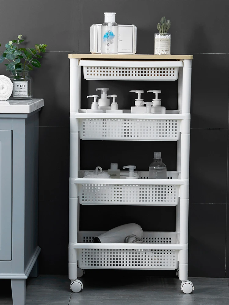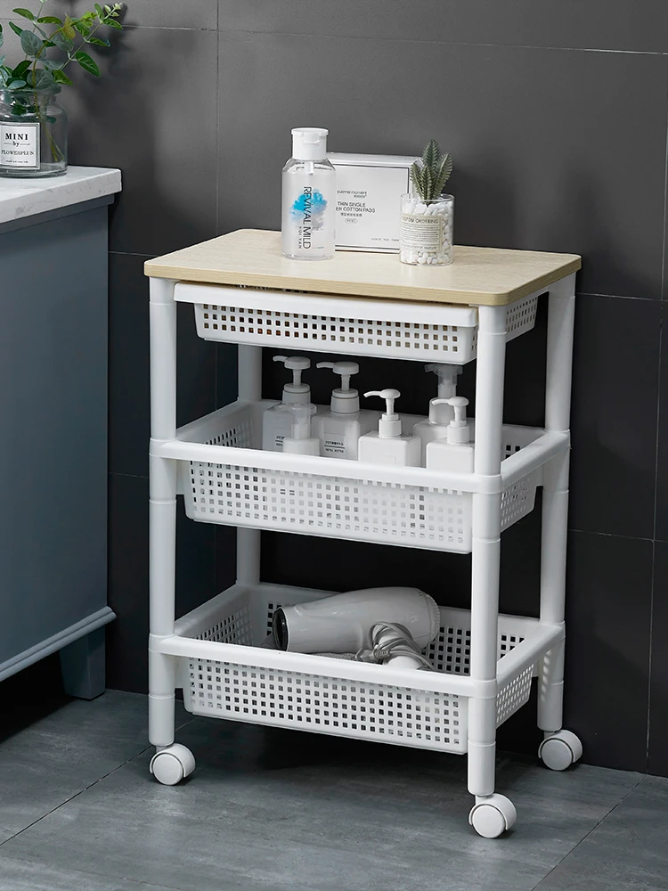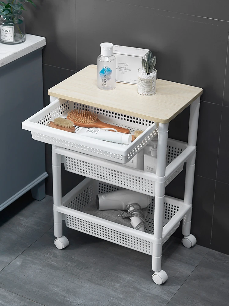 KsSRjXvaHere you can buy Floor-Type Wooden Top Drawer Multi-Functional Mobile Trolley Bathroom Storage Rack with Wheels with free delivery to your post office.