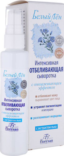 Сыворотка для лица Floresan Интенсивная Отбеливающая Белый лён +spf15 с омолаживающим действием . - отзывы . Среднее: 3 .5 (17 голосов) 11 6 . Категория: Ухаживающая косметика . Тип: Сыворотка для лица . Бренд: Floresan (Флоресан) Подробности . Рейтинг .