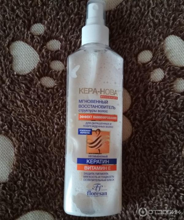 Я продолжаю тестировать бюджетную уходовую косметику и делюсь своими отзывами . Сегодня я хочу оставить отзыв на спрей - Мгновенный восстановить структуры волос "Кера-Нова" эффект ламинирования от Floresan .