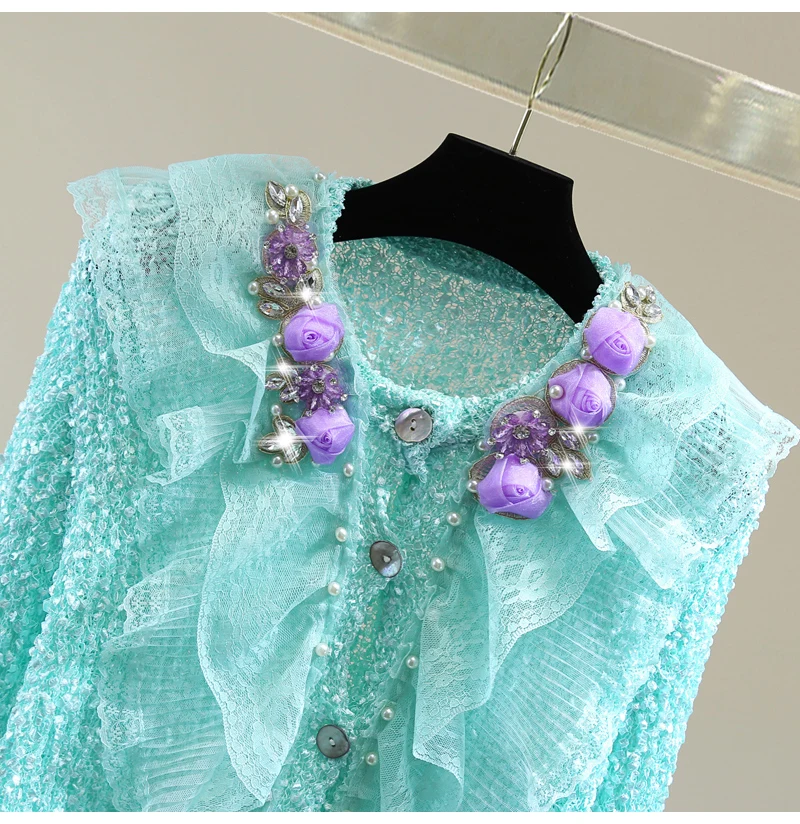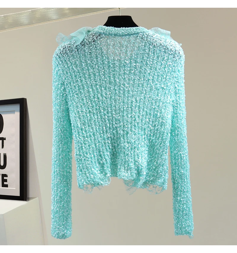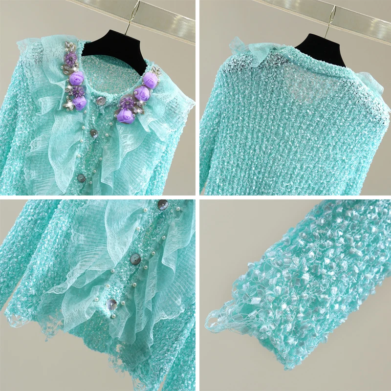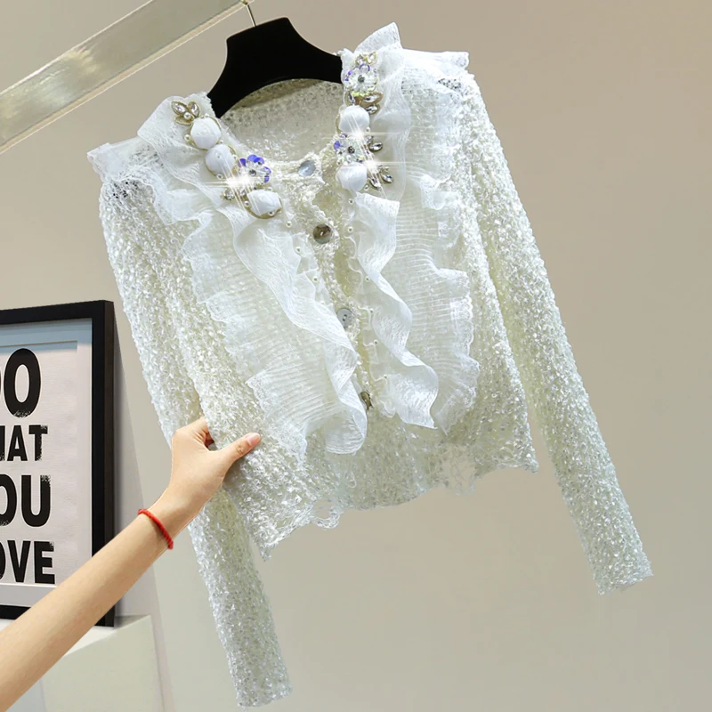 YTcOtHewTSHere you can buy Flower Rhinestone Beaded Ruffled Cardigan 2023 Fall Knit Coat Short Lace Ripped Long Sleeves Sweater Girls Lady Elastic Sweaters with free delivery to your post office.