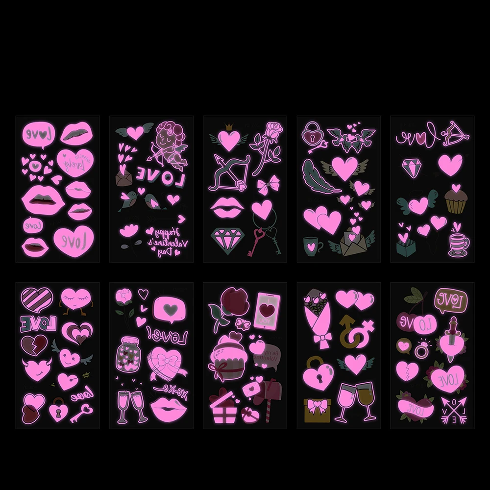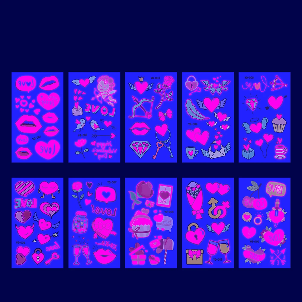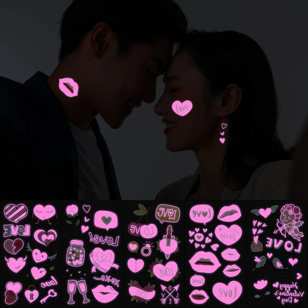 Fluorescent Skin Sticker Temporary Tattoos Waterproof Skin Tattoos Stickers For Arm Leg Face Party Heart Valentine's Day Tattoo - Купить с бесплатной доставкой
