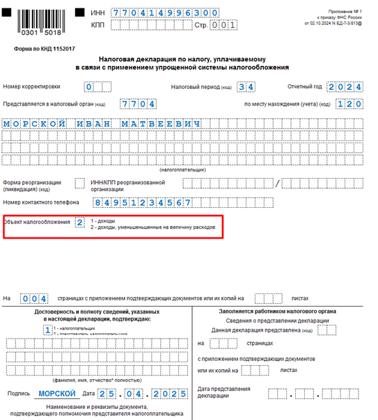 Фнс декларация усн доходы