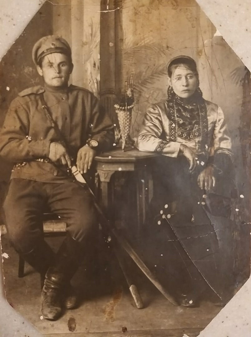 Lavr BozhkoНа фотографии представленной ниже - молодая казачья семья. К сожалению, сохранились сведения лишь о казачке - это Соломония Венедиктовна Фофанова (девичья фамилия). Родные назвали её ласково Солоня. Родители Соломонии Венедиктовны -Матрёна и Венедикт Фофановы проживали в посёлке Бокаушино, Красновской станицы. Семья была большой.