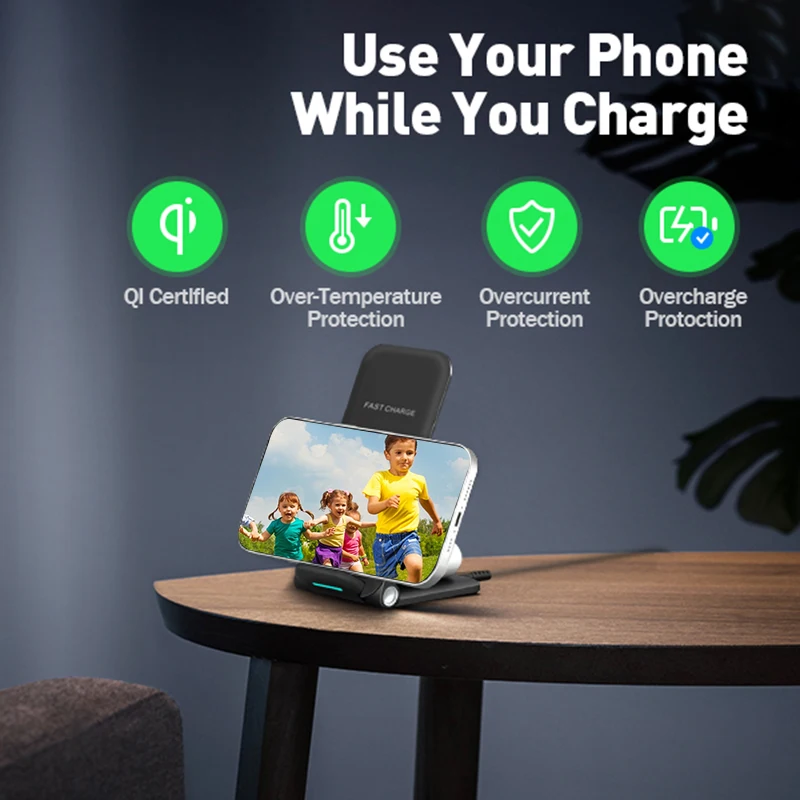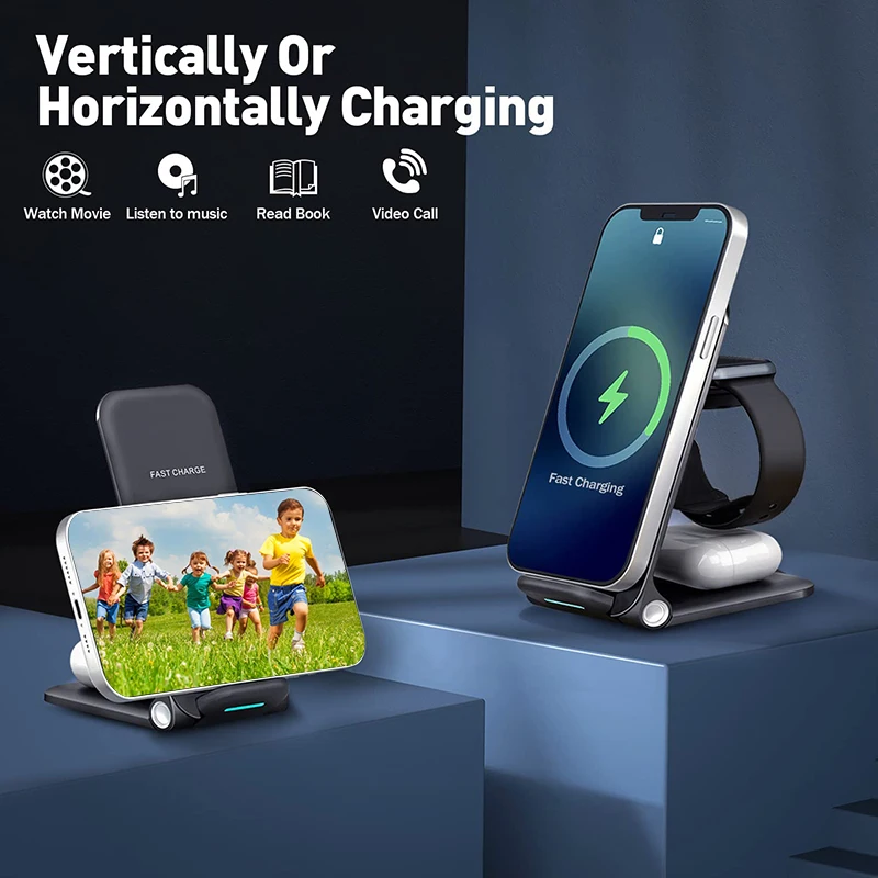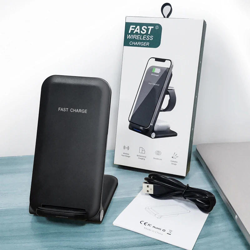 Foldable 3 In 1 Fast Wireless Charger For Mobile Phone Portable Multipurpose Earphone Smart Watch Charging Stand - Купить с бесплатной доставкой