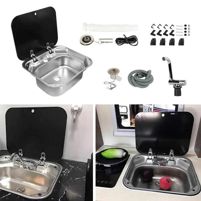TtZpqVVpHere you can buy Foldable Stainless Steel RV Kitchen Sink Space-Saving Single Slot Basin Durable Flip-Top RV Sink with Cover Washbasin for Travel with free delivery to your post office.