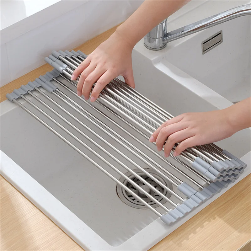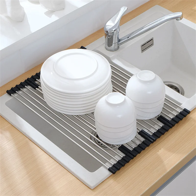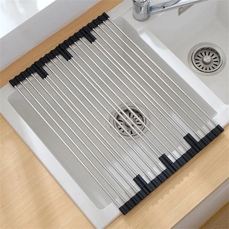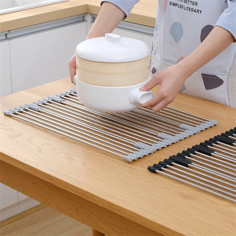Foldable Stainless Steel Sink Drain Curtain Multifunctional Tableware Drainer Rack Heat Resistant Insulation Pad Kitchen Tools - Купить с бесплатной доставкой