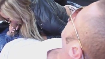 Distrae al taxista enseñando sus pechos y sus bragas