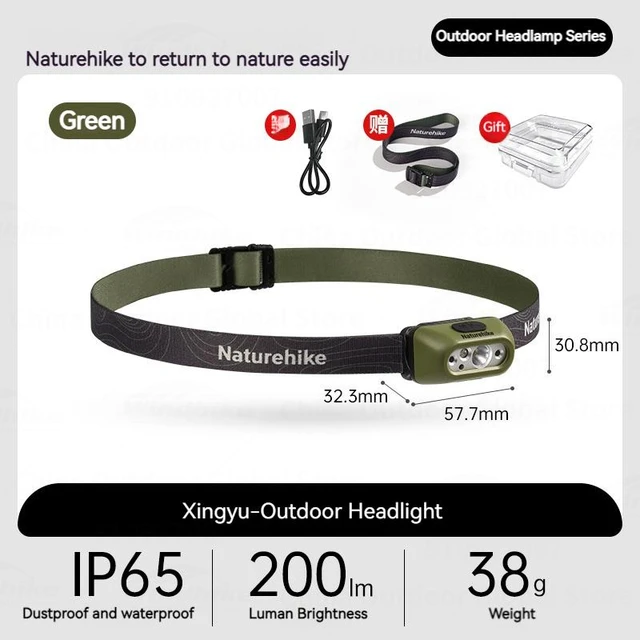 Размер: 57,7*32,3*30,8 мм Вес: около 56 г (включая лямку).Бусины лампы: бусины белого света * 1 красный свет * 1 инфракрасный датчик * 2.Люмен: 2-200 лм. Расстояние облучения: 18-60 м Номинальная мощность: 2,75 Вт