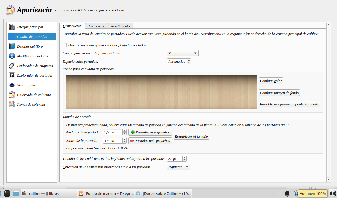 WalterMe preguntaron si se podía personalizar el fondo de calibre, donde se ven las portadas, con alguna imagen de maderas.