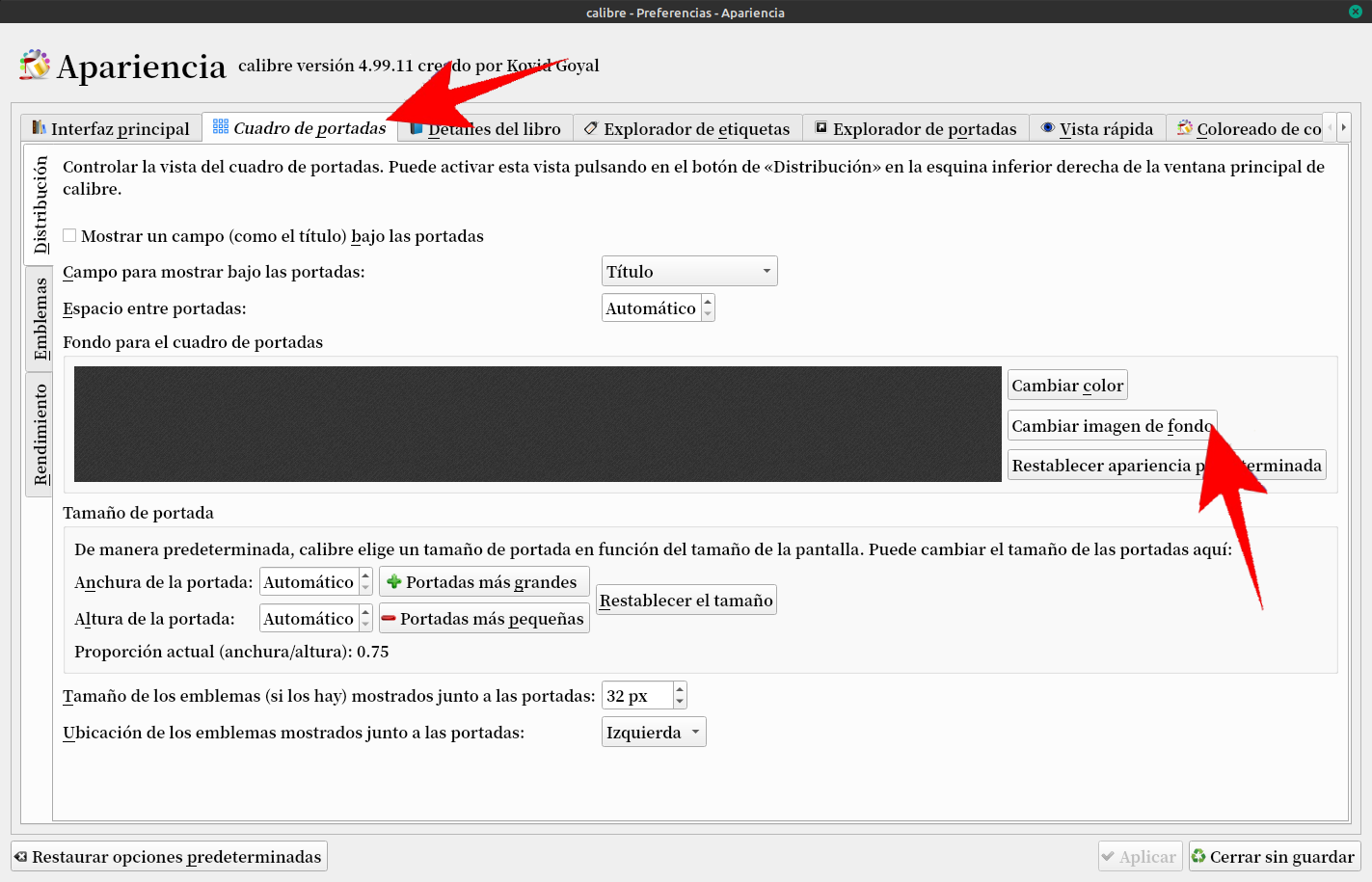 Vamos a Cuadro de portadas y a cambiar la imagen de fondo