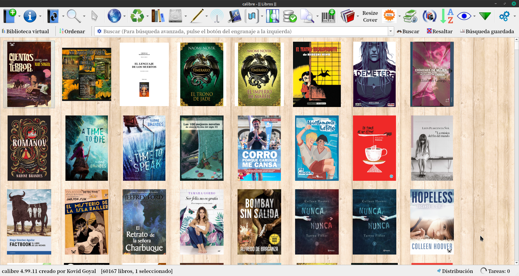 Para ver así Calibre hay que dejar visible solamente el cuadro de portadas.