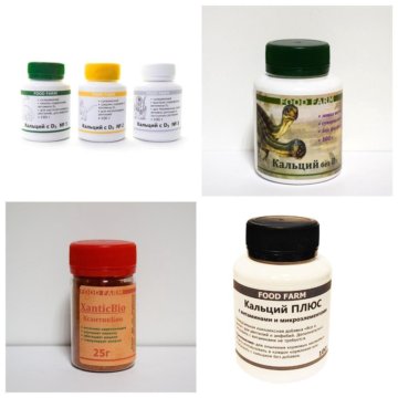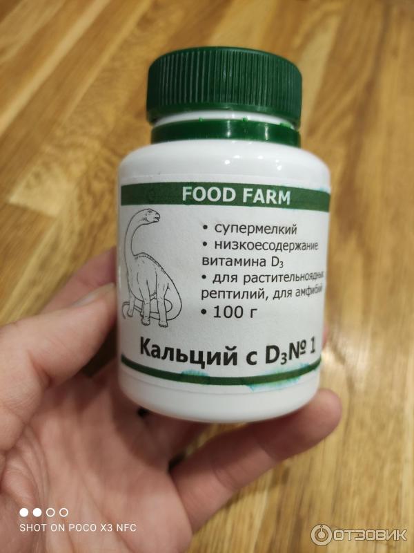 Кальций и витамины FOOD FARM Компания " Food Farm " занимается изготовлением подкормок для рептилий, амфибий и других животных . Товары этой фирмы отличает универсальность, экономичность, хороший состав . Удобные и красивые упаковки с ложечками . Кальций ПЛЮС FOOD FARM c витаминами и микроэлементами (100г) В наличии 650 руб . +7 (495) 162-82-11