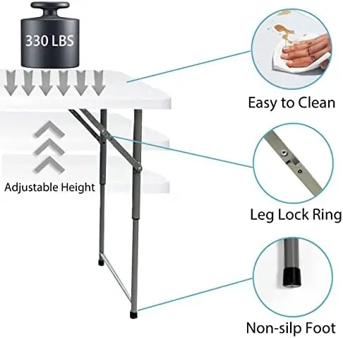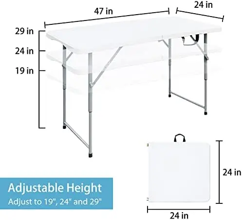 JEzQdcvvwyHere you can buy Foot Folding Table 4ft Foldable Portable Desk, Small Plastic Card Table, Adjustable Height Fold up Lightweight Table for Picnic with free delivery to your post office.