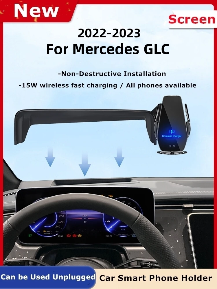 For 2022 2023 Mercedes Benz GLC Car Screen Phone Holder Wireless Charger Navigation Modification Interior 12.8 Inch Size - Купить с бесплатной доставкой