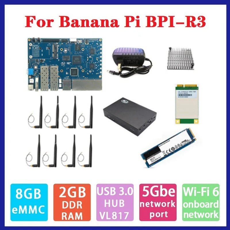 hqOkcRAIqHere you can buy For Banana PI BPI-R3 MT7986 2G+8G EMMC Development Board With 256G SSD+4G Module+Case+8Xantennas+Heat Sink+Power with free delivery to your post office.