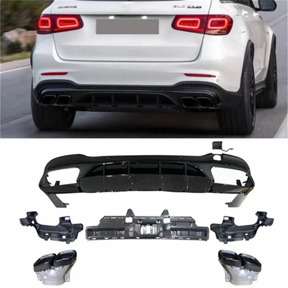 For Benz GLC Rear Lip X253 Retrofit GLC63S AMG Bright Black Rear Lip Four Out Tail Throat Rear Bumper diffuser 2020-UP - Купить с бесплатной доставкой