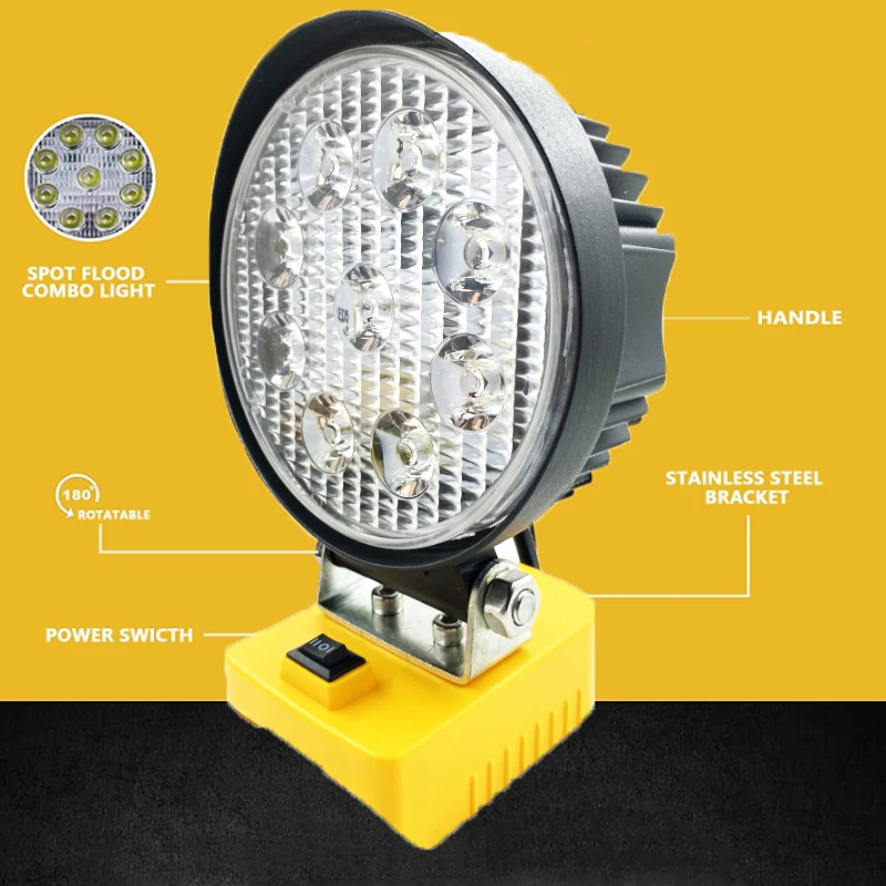 For Dewalt 18V 20V Lithium Battery LED Work Light Powered Light 27W Flashlights Spotlight Cordless Handheld LED Light - Купить с бесплатной доставкой