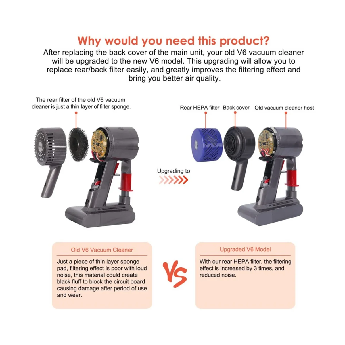 "For Dyson V6 DC58 DC59 DC61 DC62 DC74 Vacuum Cleaner Replacement Accessories Motor Rear Cover Rear Filter Kit(B)" * Buy Now With Free Shipping Just For $8
