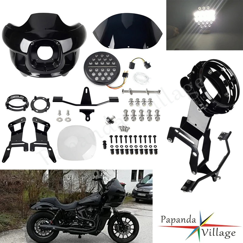 LUbaXyInxHere you can buy For Harley Dyna Street Bob Low Rider Wide Sports Glide 06-17 Motorcycle Upper Full Fairing Windshield Deflector LED Headlight with free delivery to your post office.