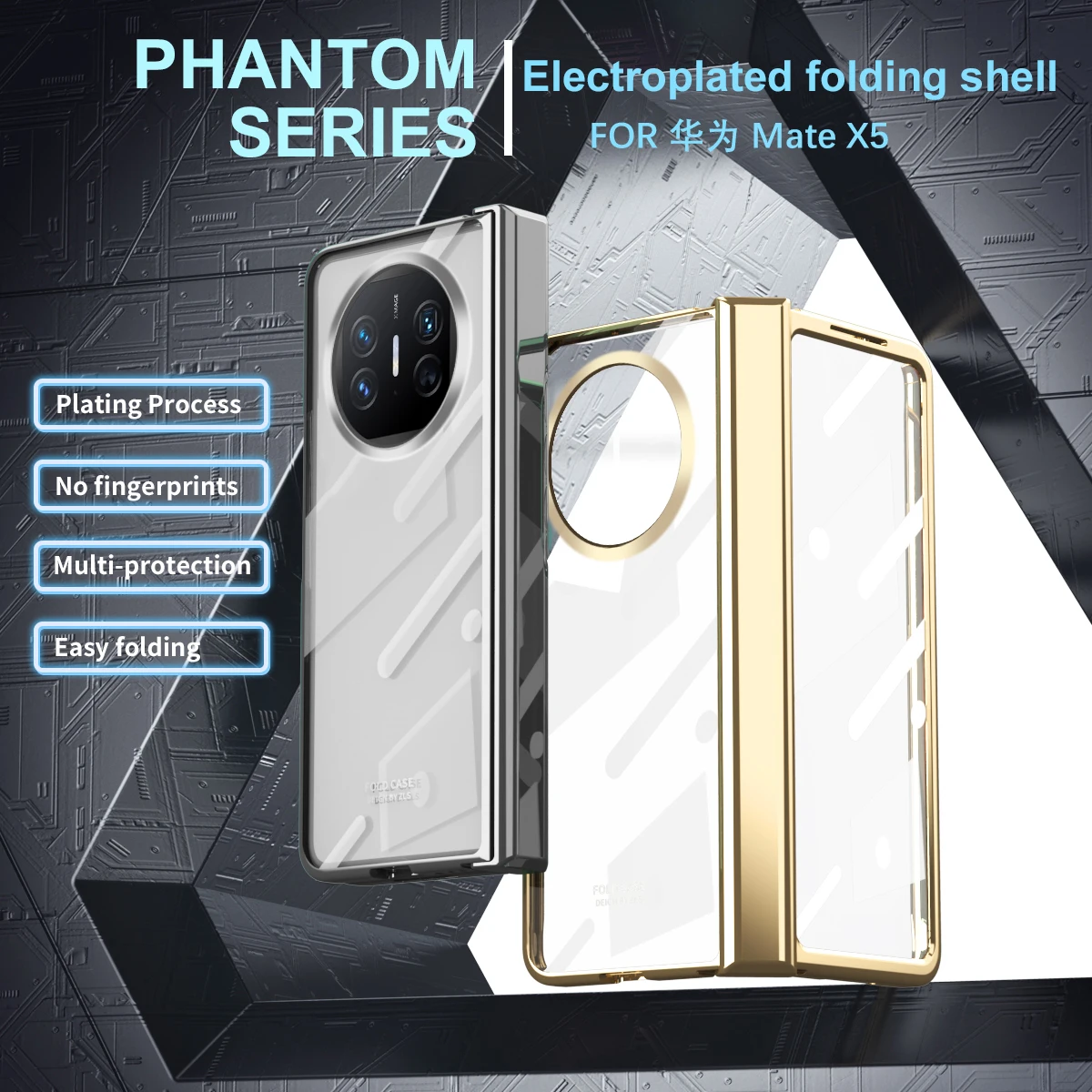 wCAnBxaqHere you can buy For Huawei Mate X5 Case Electroplated Transparent Folding Hinge Bracket With Tempered Film Shockproof Protection Hard Back Cover with free delivery to your post office.