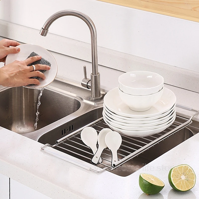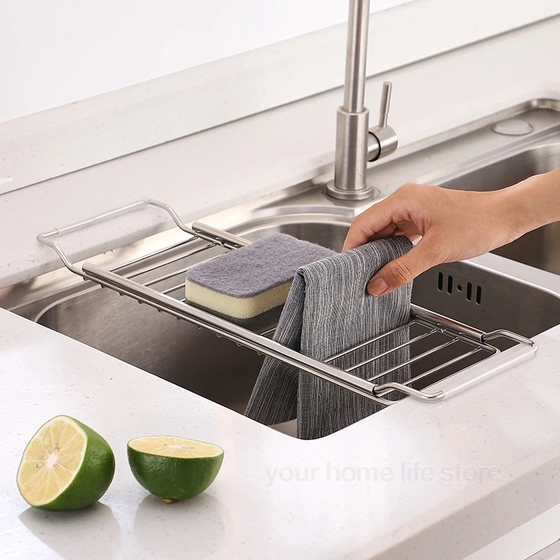 "For Kitchen Organizer Drain Rack Expandable Over The Sink, Stainless Steel Sink Rack,dish Cup Soap Sponge Rag Storage Holder" * Buy Now With Free Shipping Just For $12
