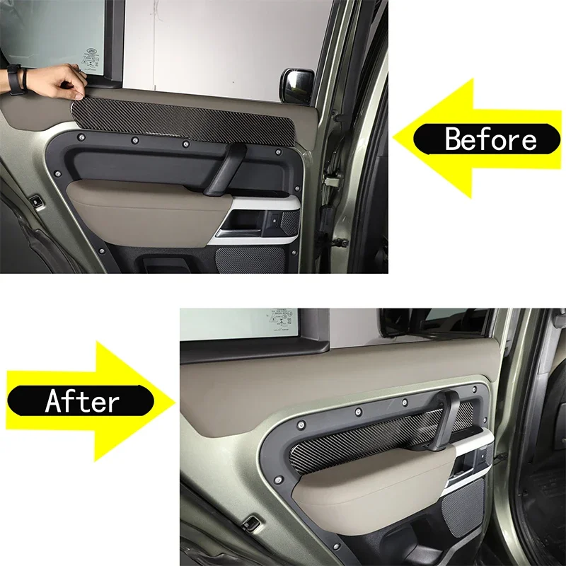 For Land Rover Defender 90 110 2020-2024 Soft Carbon Fiber Car Inner Door Armrest Side Panel Sticker Trim Cover Car Accessories - Купить с бесплатной доставкой