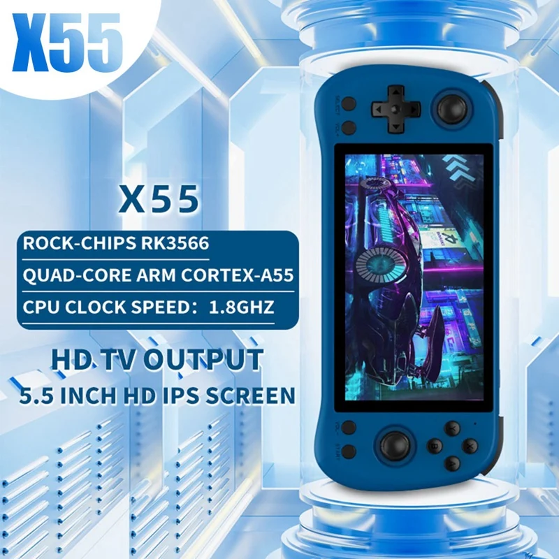 ImAFPawOrHere you can buy For POWKIDDY X55 Retro Game Console 16G+64G RK3566 5.5 INCH 1280X720 IPS Screen Open-Source Linux Handheld Video Console with free delivery to your post office.