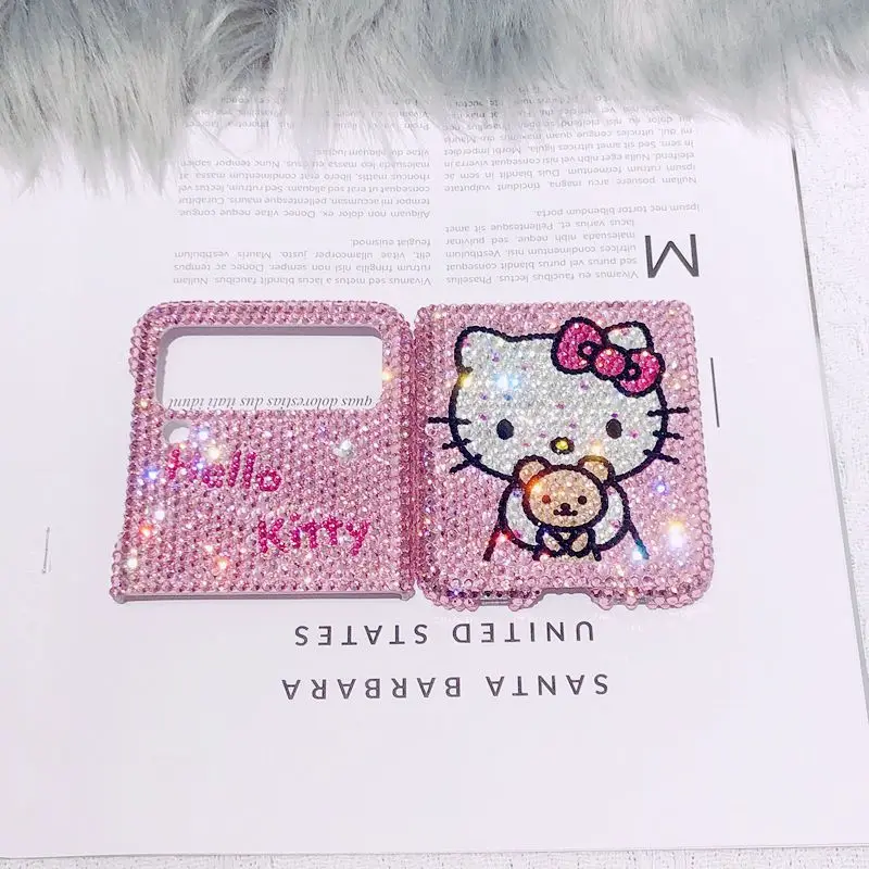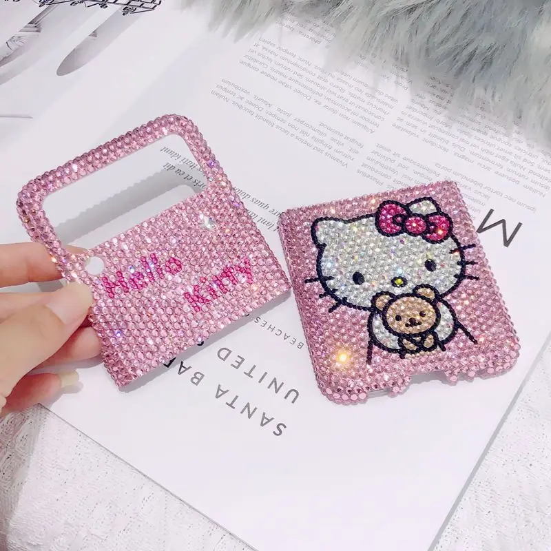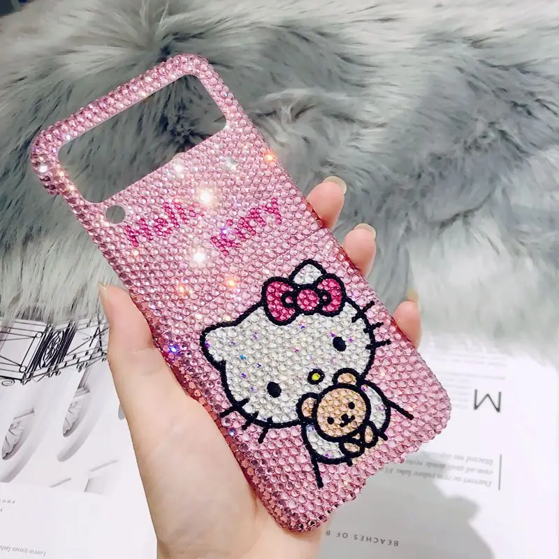 "For Samsung Folding Zflip 3 4 5 Phone Case Folder 2 Handmade Diamond-Embedded Phone Case 3 Generation Rhinestone Hello Kitty" * Buy Now With Free Shipping Just For $32