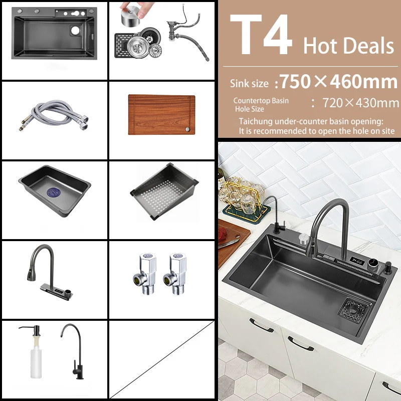 "For TURKEY Kitchen Stainless Steel Topmount Sink Large Single Slot Wash Basin With Multifunction Touch Waterfall Faucet" * Buy Now With Free Shipping Just For $402