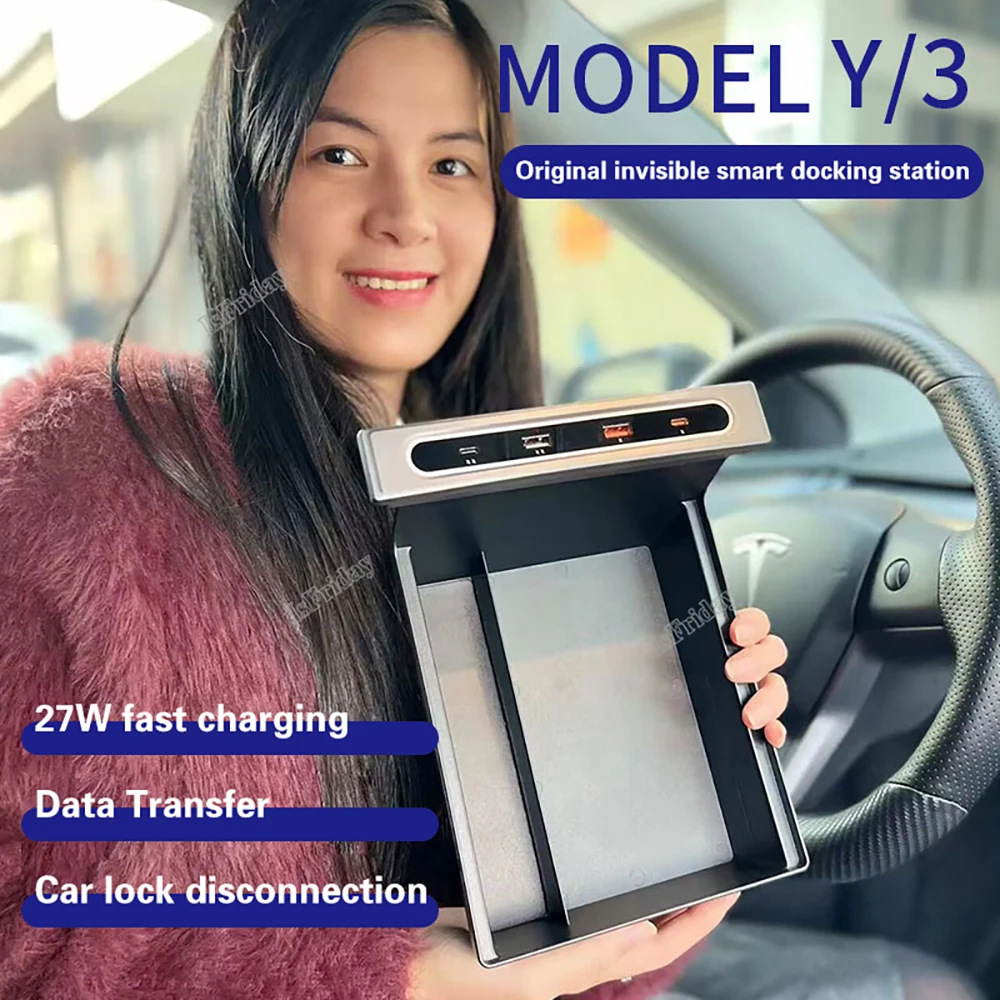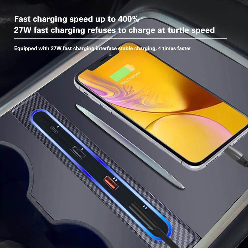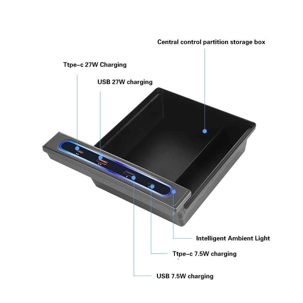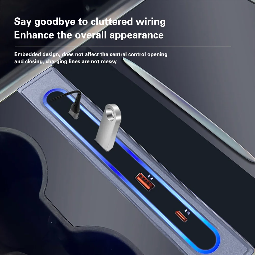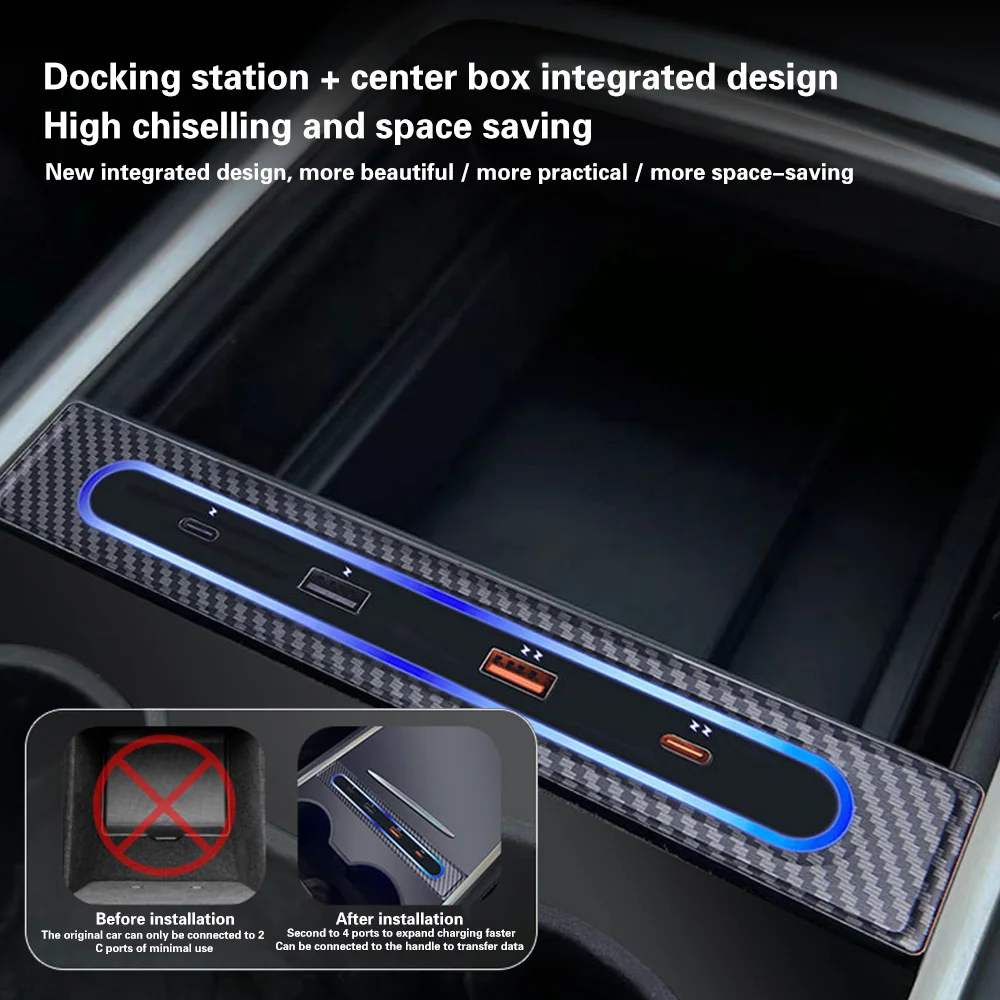 CznwgGNJIHere you can buy For Tesla Model 3 Y USB Hub Extension With Storage Box Quick Charger Docking Station USB LED Shunt Hub Extension with free delivery to your post office.
