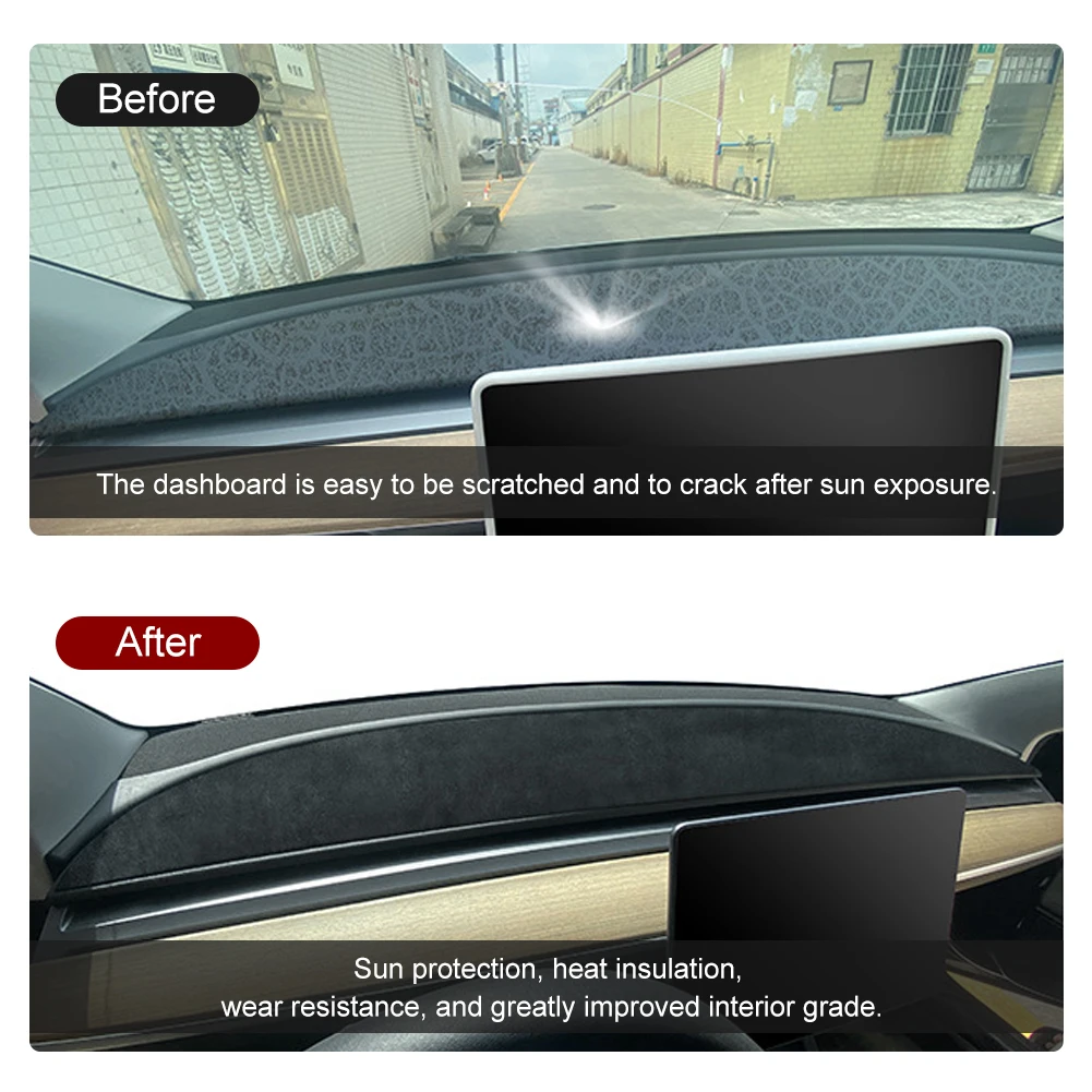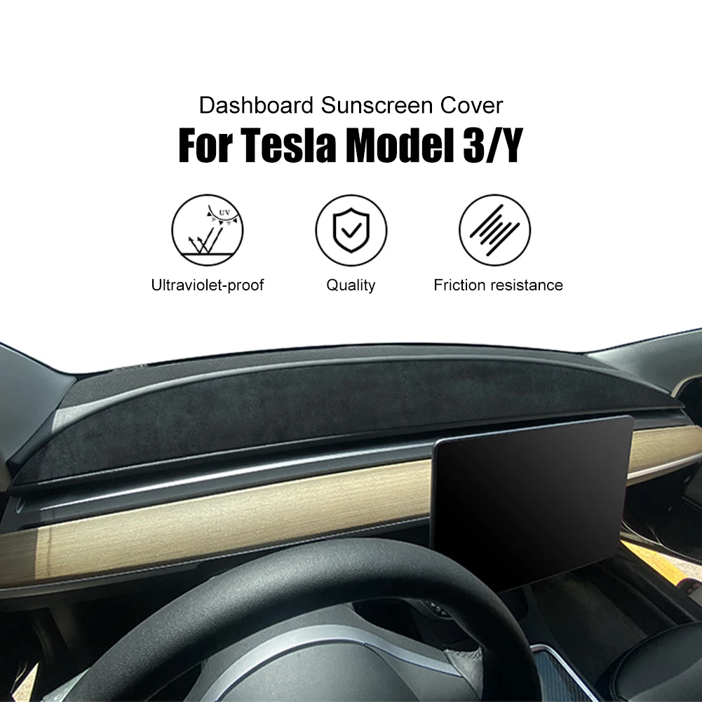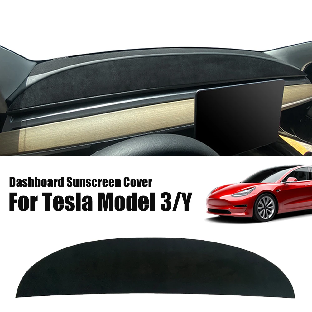 For Tesla Model 3/Y 17-23 Dashboard Cover Suede Sun Protection Instrument Panel Pad Sunshade Protection Interior Accessories - Купить с бесплатной доставкой