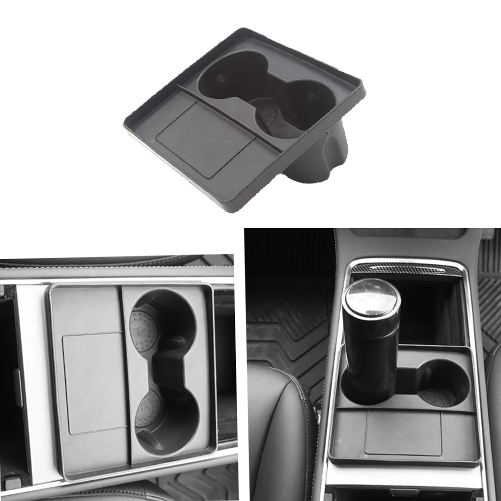 For Tesla Model 3/Y 2021-2022 Central Control Cup Holder Card Key Limit Area Storage Box Beverage Non-slip Double Hole Insert - Купить с бесплатной доставкой