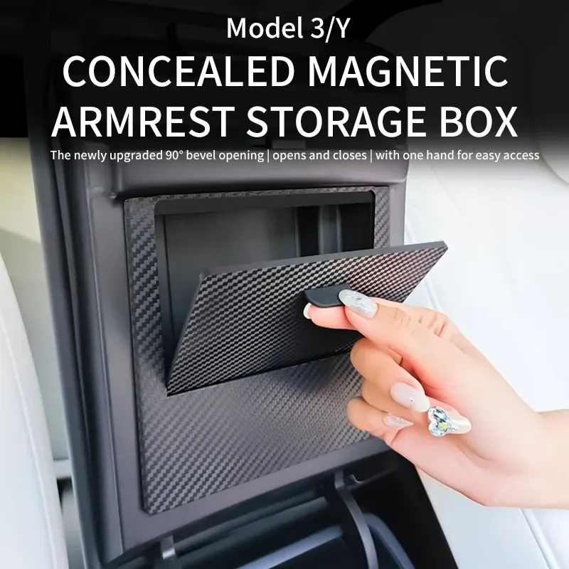 nBoxbWoaHere you can buy For Tesla Model 3/Y 2021-2023 Magnetic Privacy Storage Box Concealed Storage Box Button Storage Armrest Car Interior Accessories with free delivery to your post office.