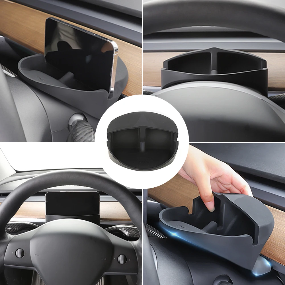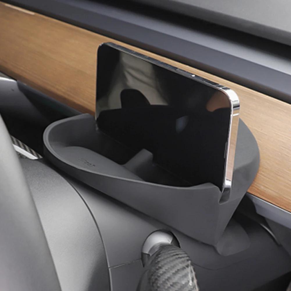 For Tesla Model 3/Y Steering Wheel Phone Bracket Silicone Storage Box Phone Holder Sunglasses Storage Box Interior Organizer - Купить с бесплатной доставкой