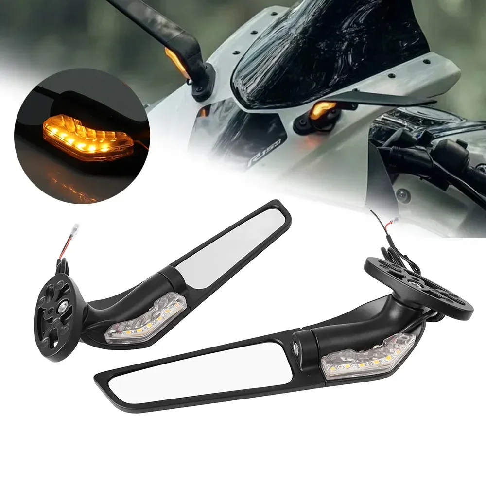 For Yamaha YZF R1 R6 R25 R3 Suzuki GSXR Modified Motorcycle Rearview Side Mirrors Wind Wing Adjustable Rotating with LED Light - Купить с бесплатной доставкой