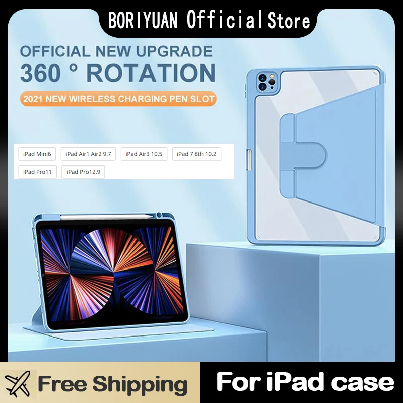 «For iPad pro 11 Case 2021 Air 4 2020 Tablet Cases For iPad 10.2 7/8/9th Gen Mini 6 360 Degree Rotation with Pencil Holder Cover» по лучшей цене на рынке! Всего за 14$ (1330рублей)