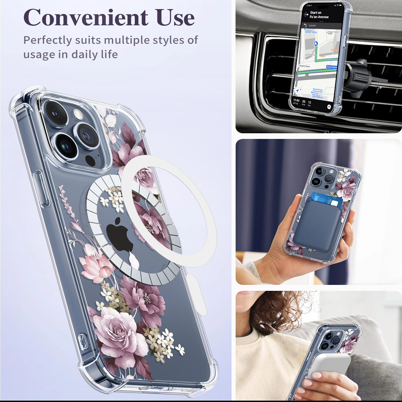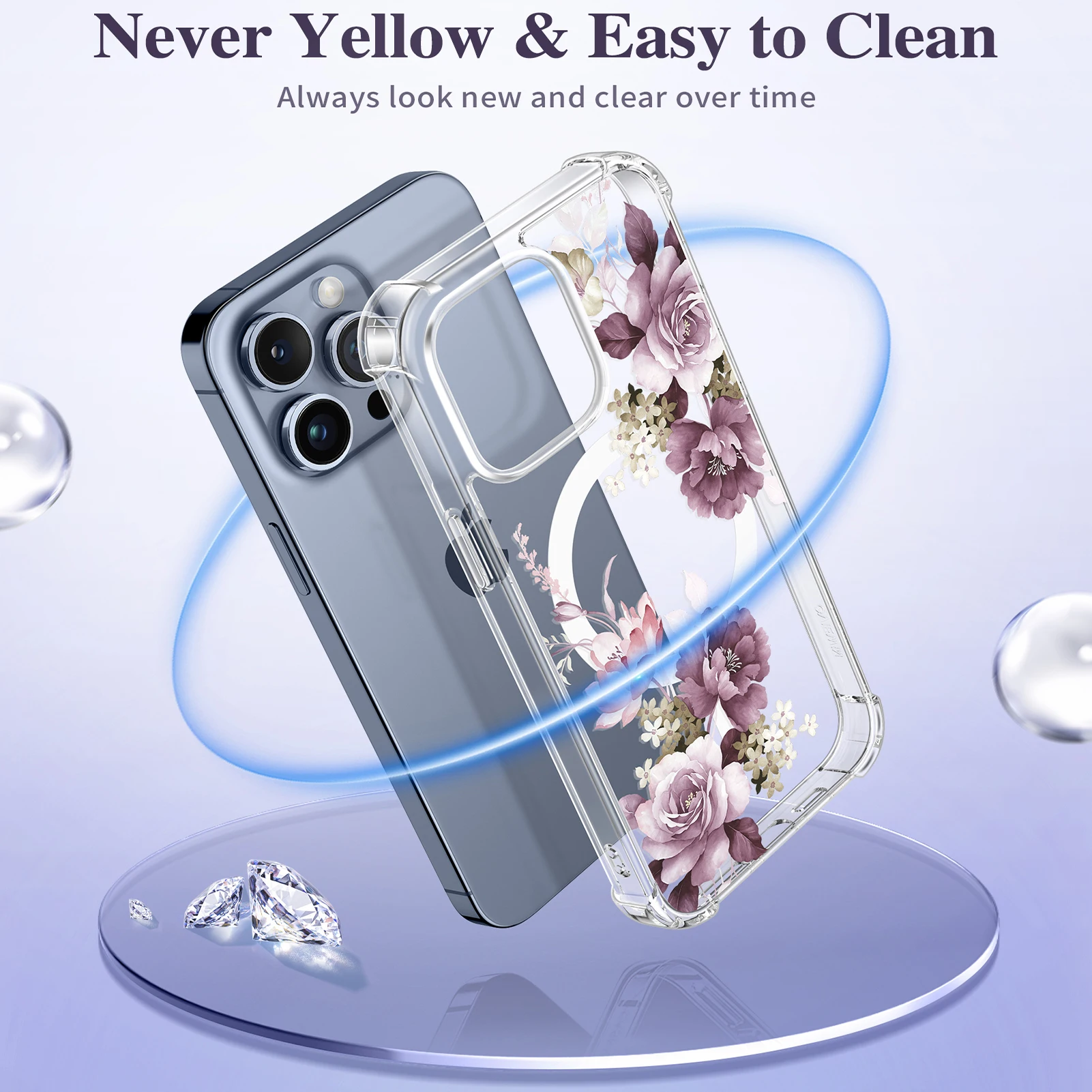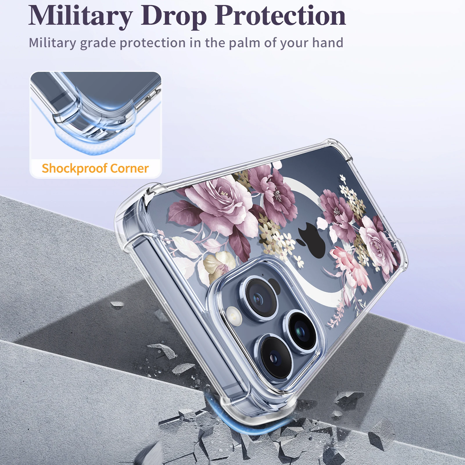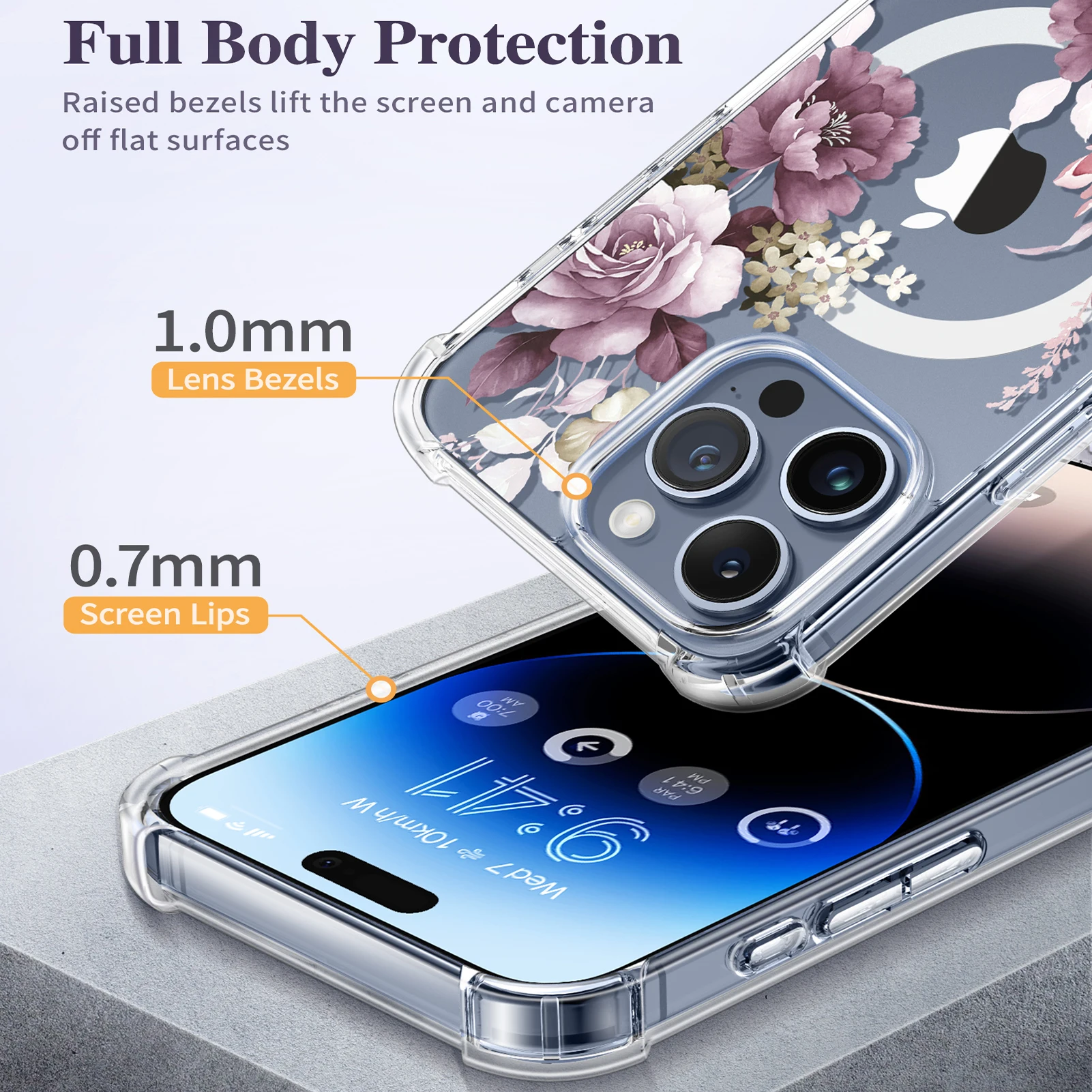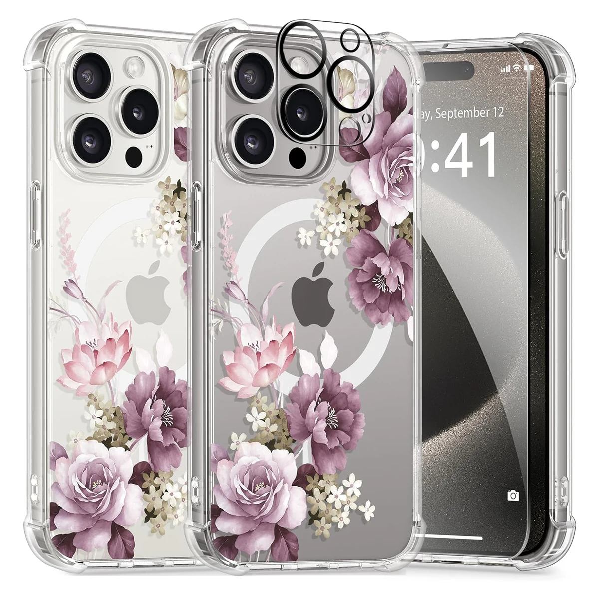 KMpqrLkydYHere you can buy For iPhone 15 Pro Max Case Compatible with MagSafe Screen Camera Protector Full-Body Shockproof Clear Floral Pattern Cover women with free delivery to your post office.