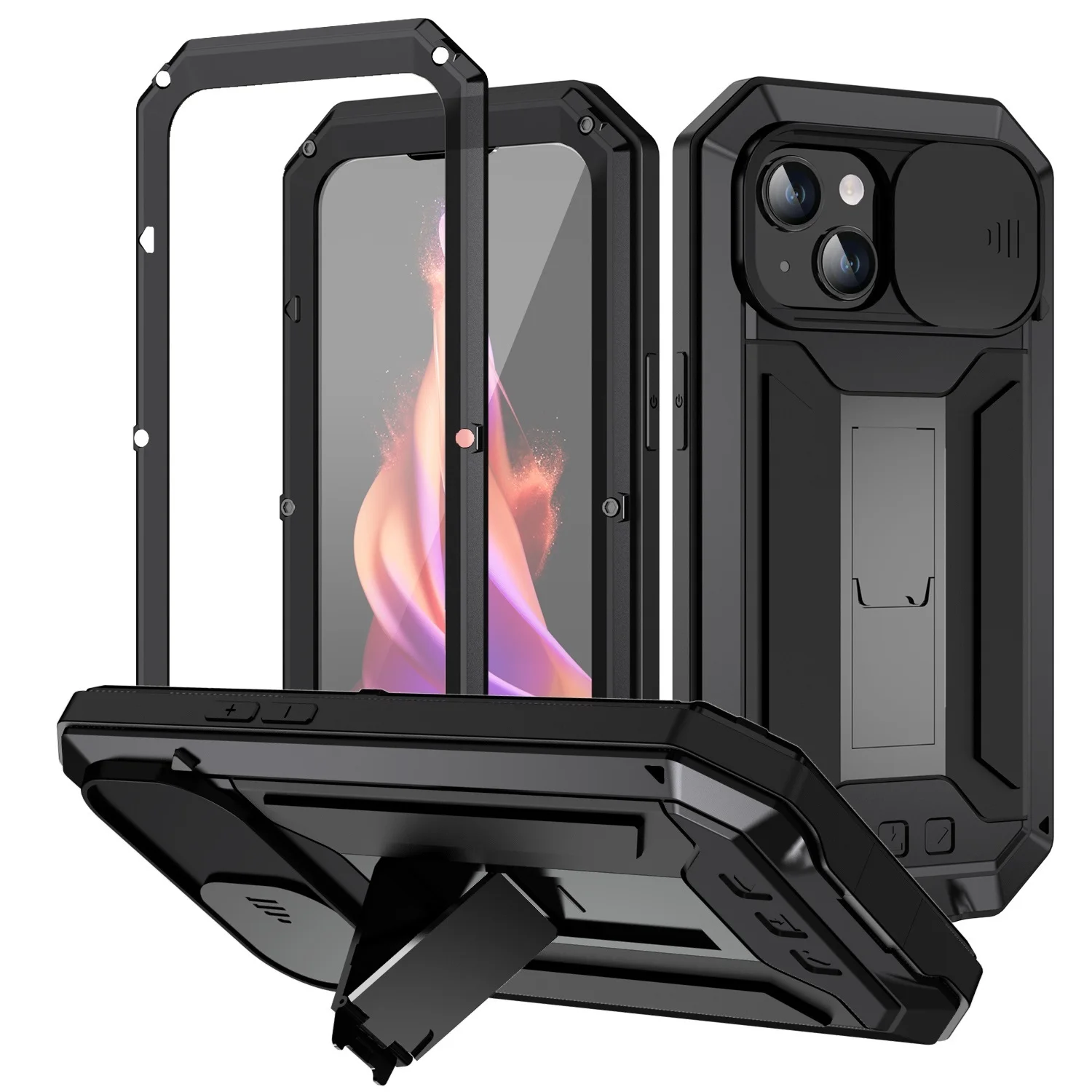 wktgAMWZHere you can buy For iPhone 15 Pro Max Case with Screen Camera Protector Kickstand for iPhone 15 Pro Max Rugged Military Metal Heavy Duty Case with free delivery to your post office.