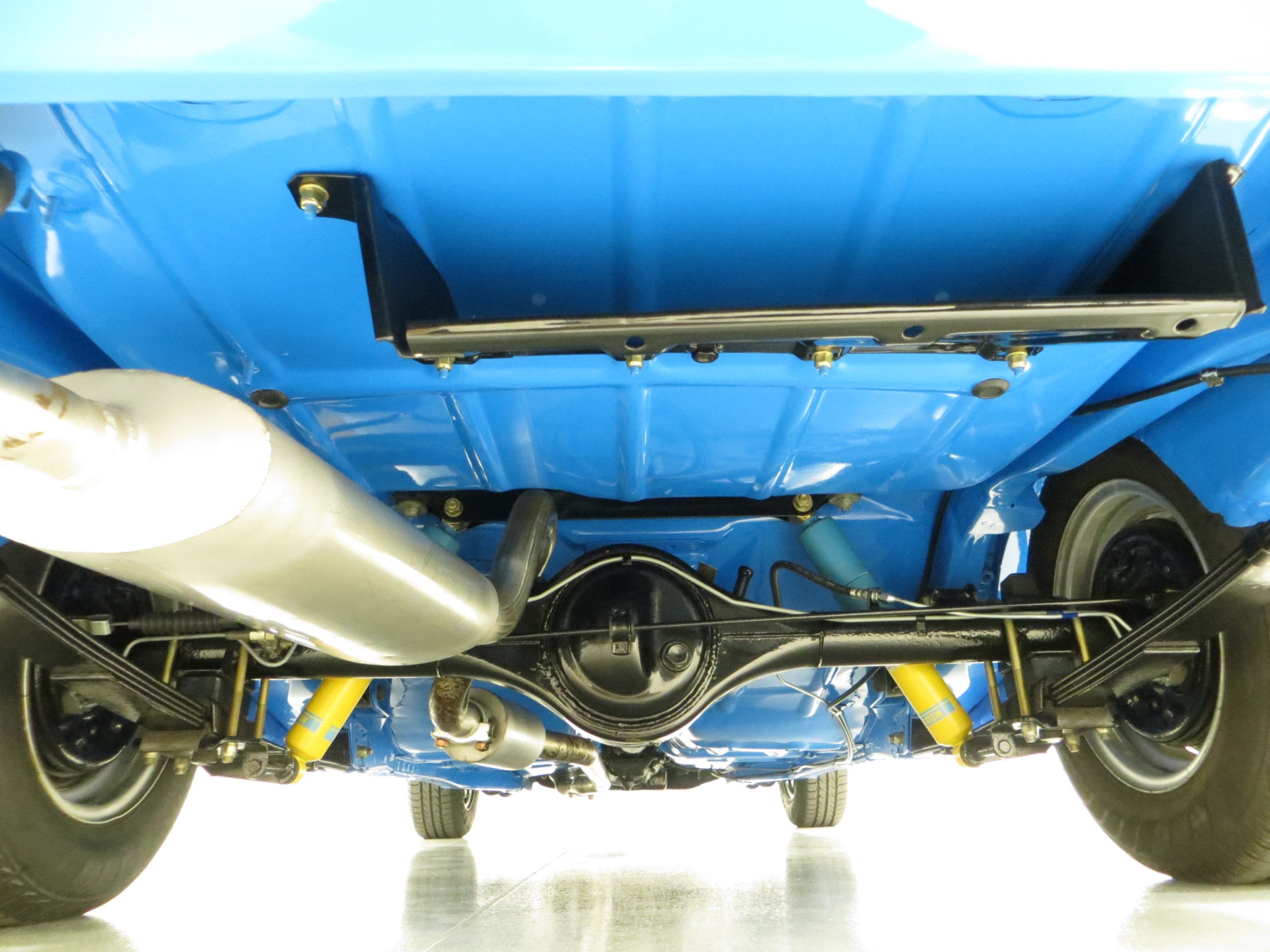 The Escort has a body color of Solid House of Kolor Blue, gold 8-spoke wheels, black brake calipers, and Ebony interior.