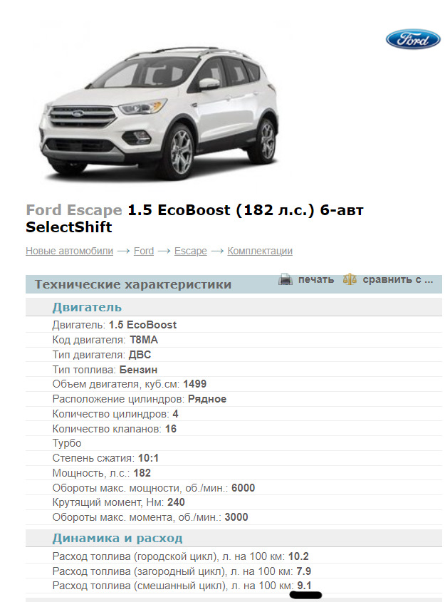 Форд эскейп расход топлива