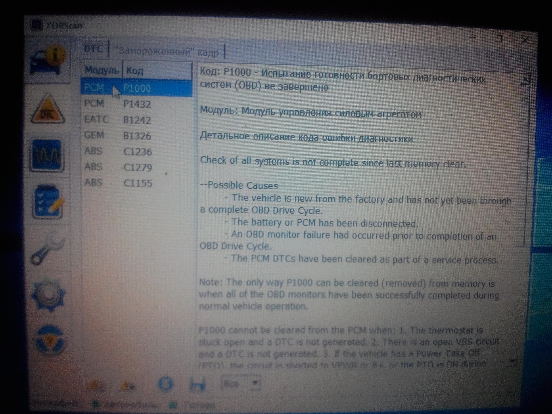 Форд ошибка 1000