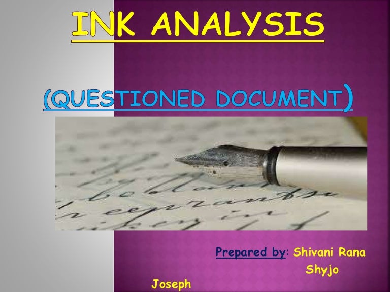 See Ink Analysis / Ink Dating (PDF) . Some of the materials we examine are paper, ink , typewriter, computer printer, carbon paper, xerographic copies, and pencil . See Tools . Dr . Lyter began his career as a forensic chemist for the Bureau of Alcohol, Tobacco and Firearms, National Laboratory Center in Rockville, Maryland .