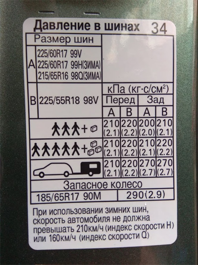 Forester давление в шинах