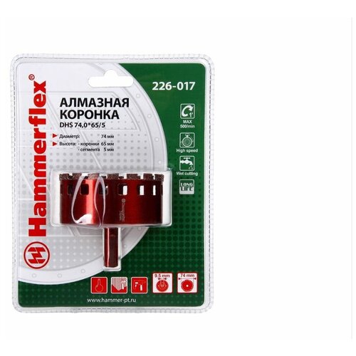 Poids brut 0,255 kg Type de connexion hexagone (HEX) Support Granite inclus Diamètre 74 mm Longueur 65 mm Description Alm. Mèche tubulaire Hammer Flex 226-017 DHS 74.0*65/5 A3, diamant 60P, grès cérame La mèche tubulaire diamantée avec revêtement électrolytique est conçue pour percer des trous dans les carreaux de céramique, le grès cérame et le marbre. La durée de vie de la fraise dépend du nombre de tours de l'outil utilisé, de la force d'avance et des conditions de refroidissement. Le refroidissement d'un trépan diamanté peut être obtenu de différentes manières. Sous blister. Caractéristiques techniques : - Couronne tubulaire diamantée ; - Le corps de la couronne est en acier au carbone A3 à haute résistance ; - Revêtement diamanté des arêtes de coupe à partir de miettes de résistance à l'usure accrue 60P ; - La tige de forme hexagonale permet une fixation plus fiable dans l'outil utilisé avec la couronne.