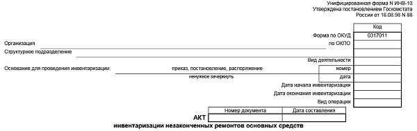 Форма 10 основные средства