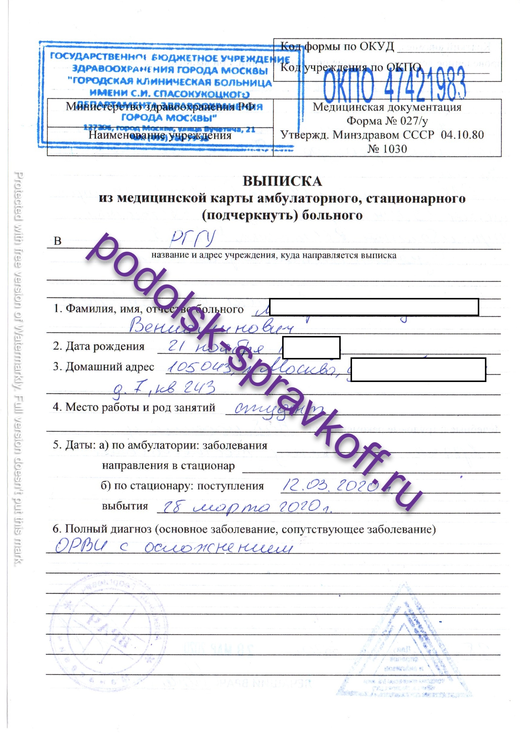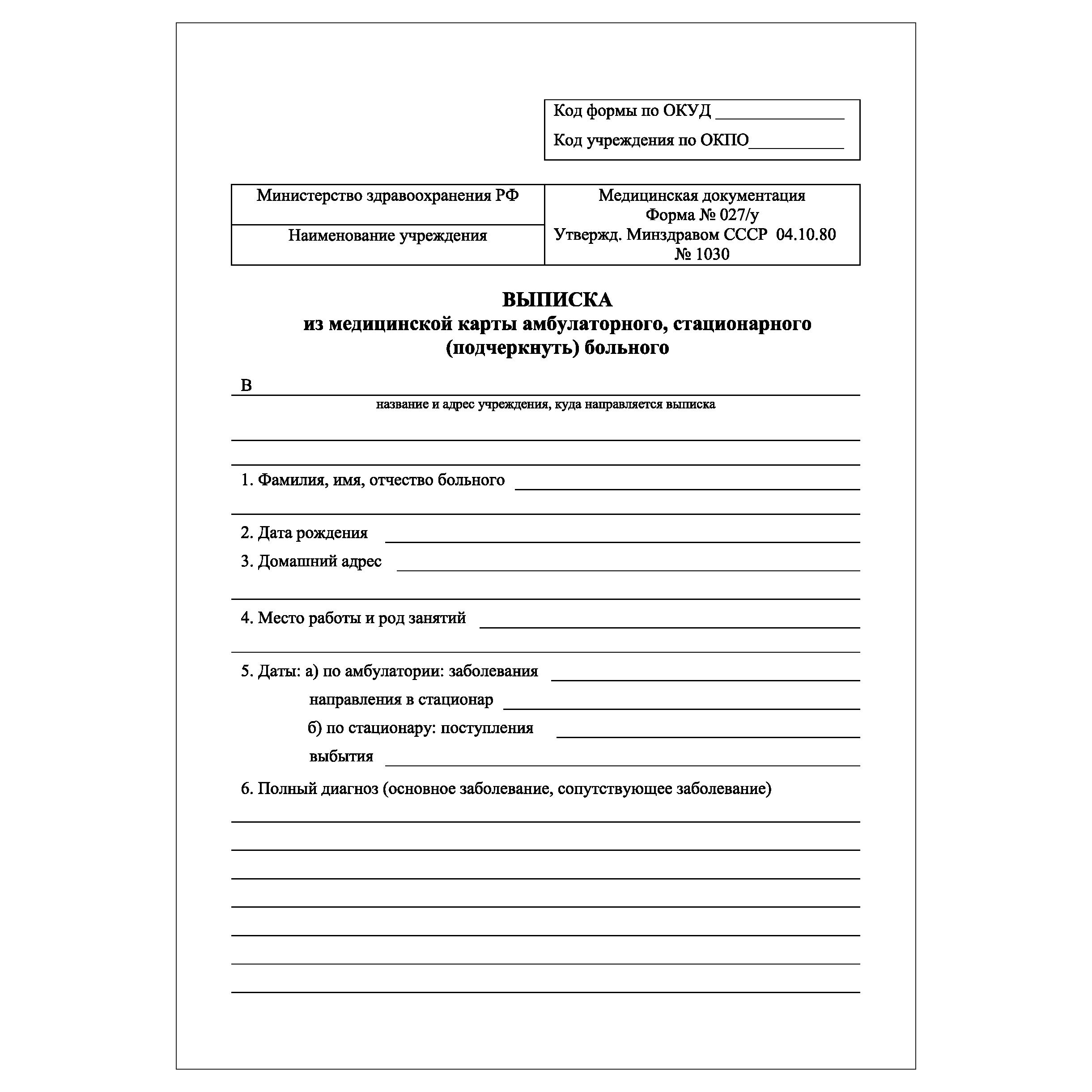 Форма 27 бланк
