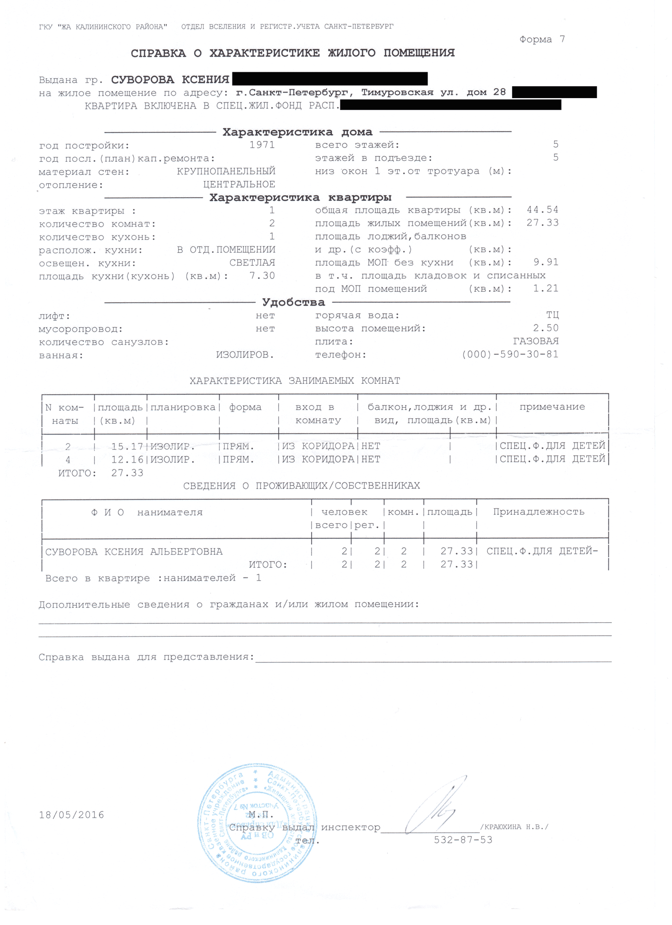 Форма 9 в калининском районе